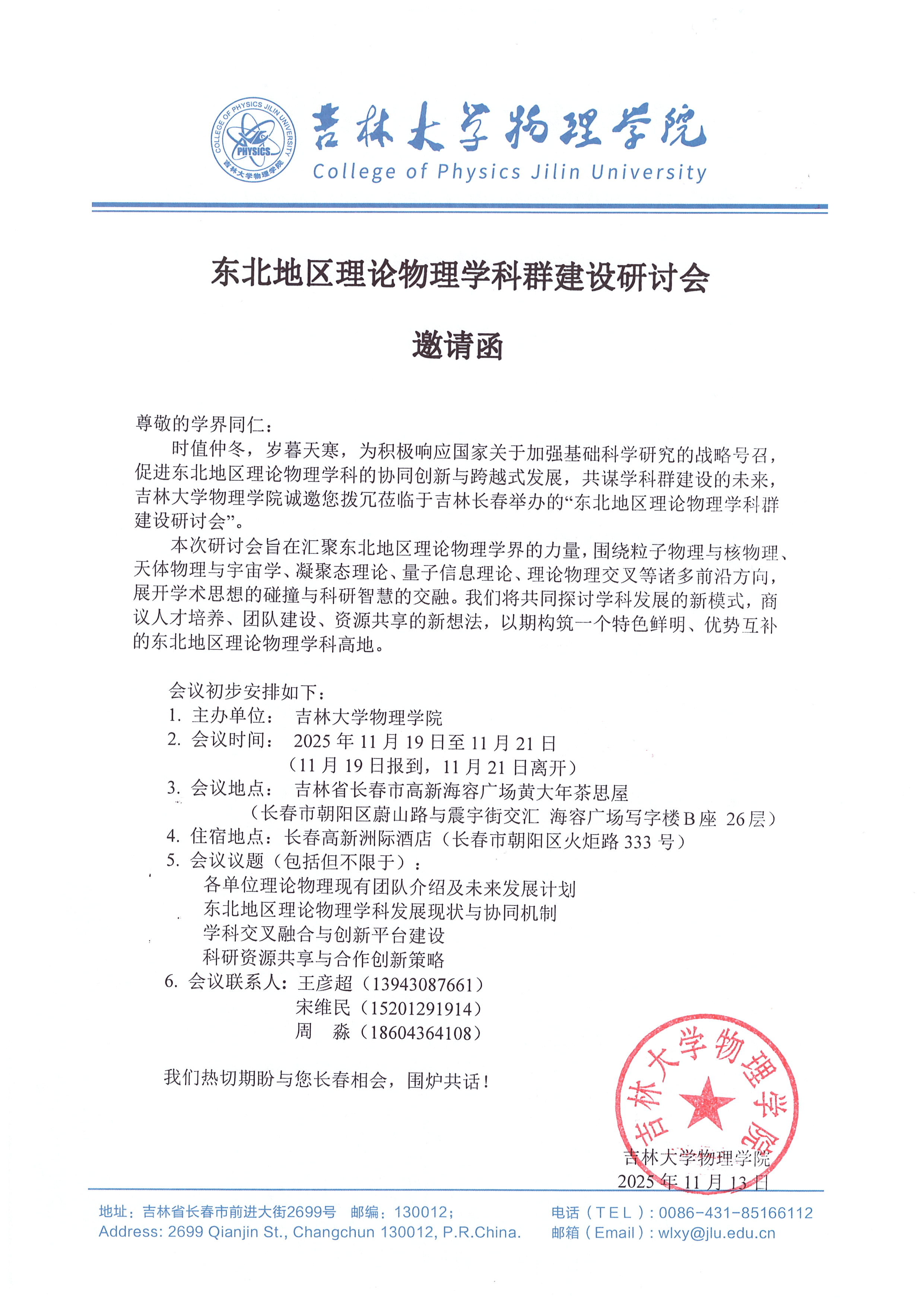 东北地区理论物理学科群建设研讨会邀请函